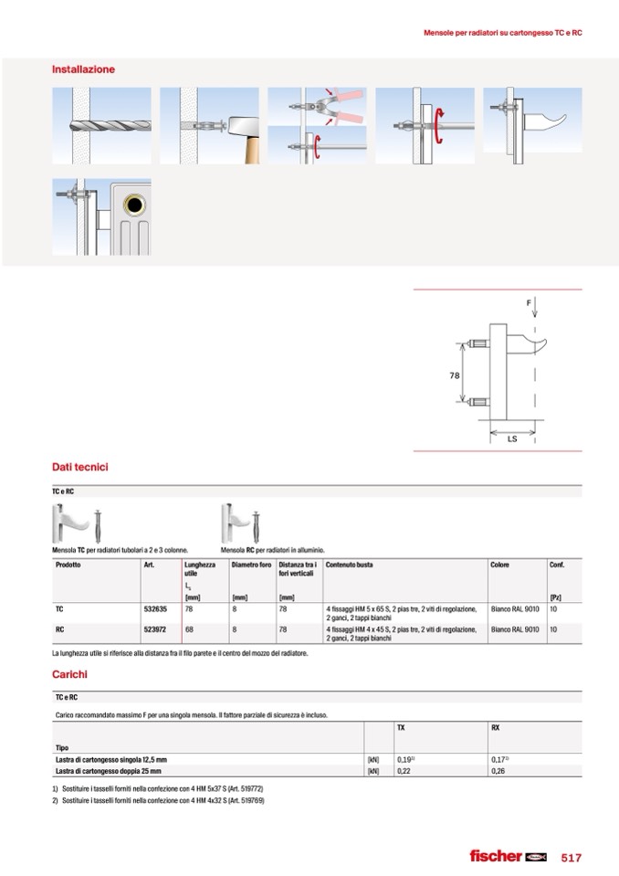 Mensole per radiatori su cartongesso TC e RC