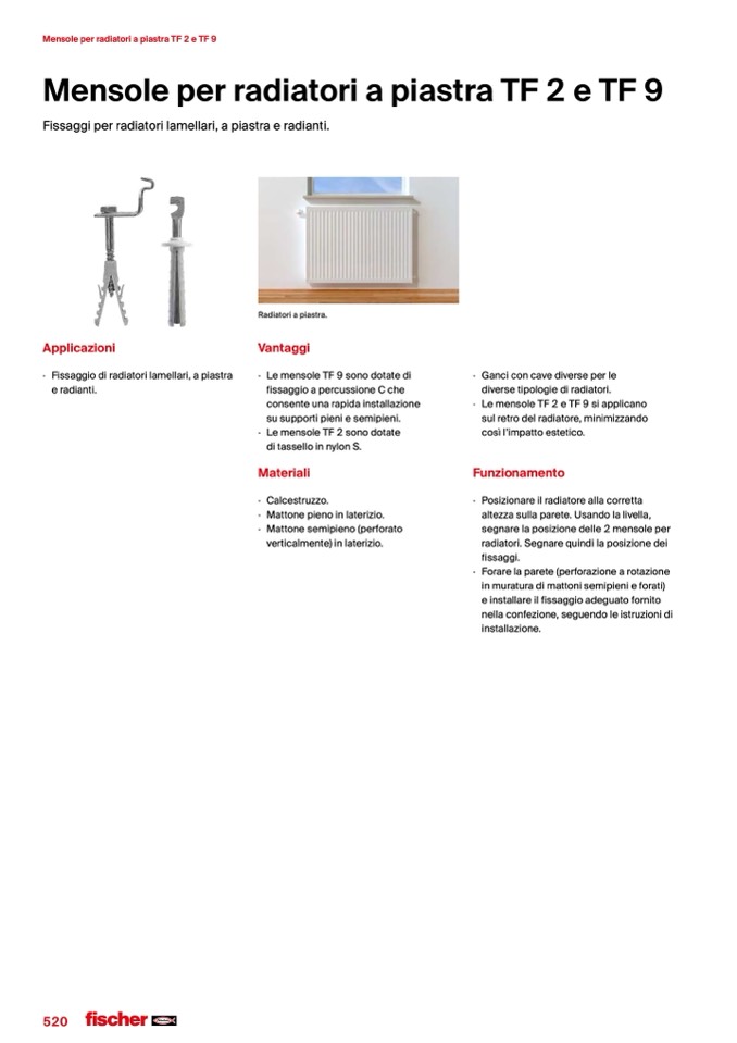 Fissaggi per radiatori lamellari, a piastra e radianti.