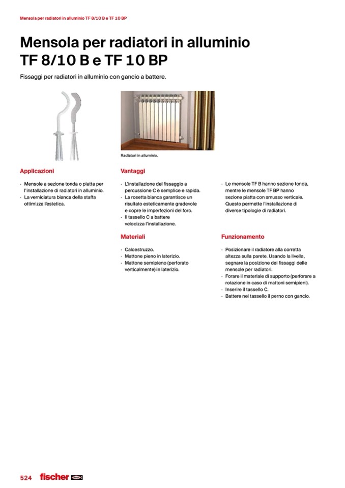 Fissaggi per radiatori in alluminio con gancio a battere.