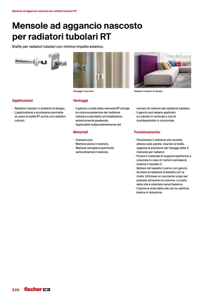 Staffe per radiatori tubolari con minimo impatto estetico.