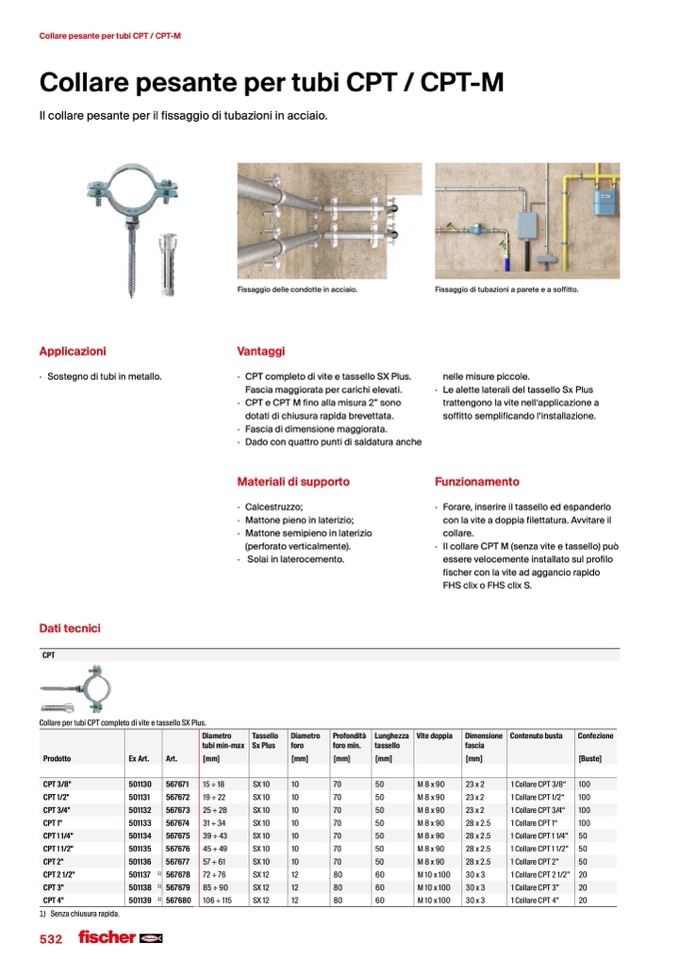 Collare per tubi CPT completo di vite e tassello SX Plus.