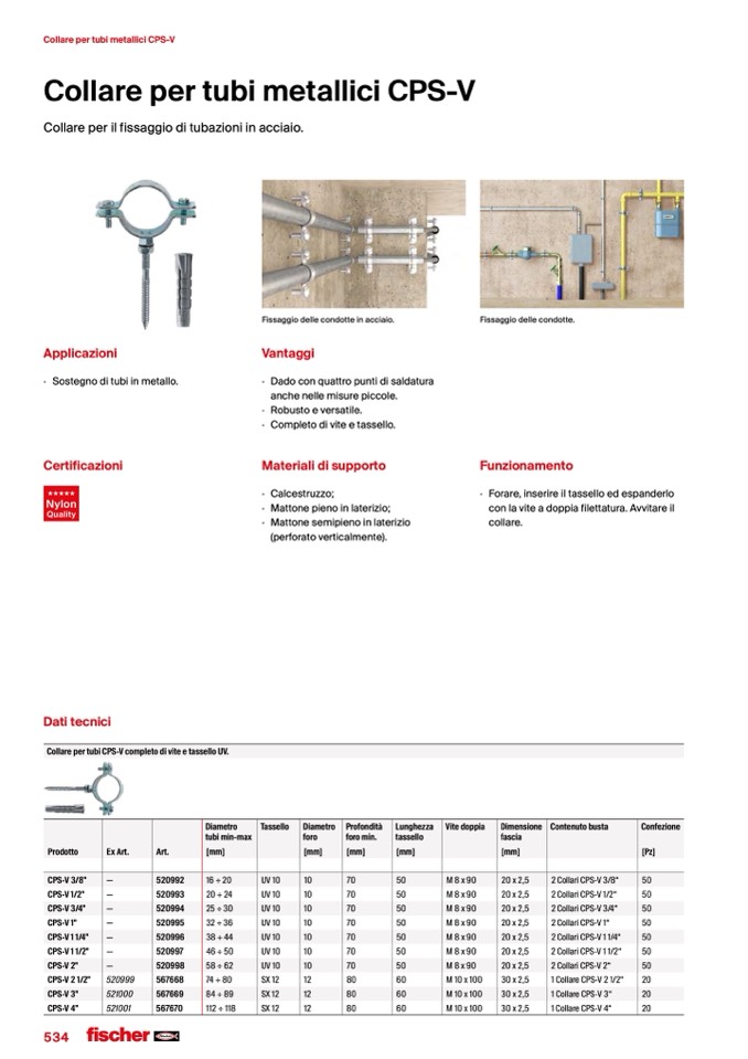 Collare per tubi CPS-V completo di vite e tassello UV.