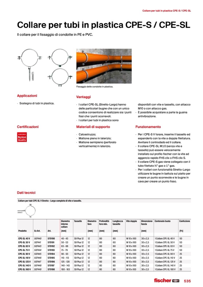 Collare per tubi in plastica CPE-S / CPE-SL