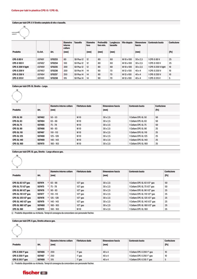 Collare per tubi CPE-SL Stretto - Largo.