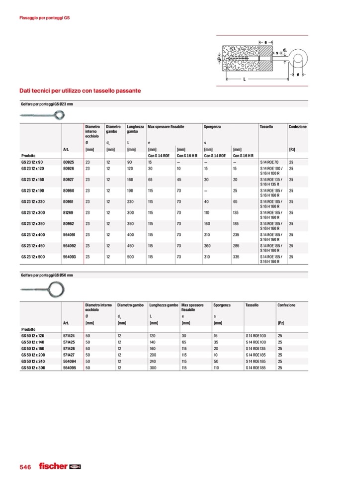 Dati tecnici per utilizzo con tassello passante