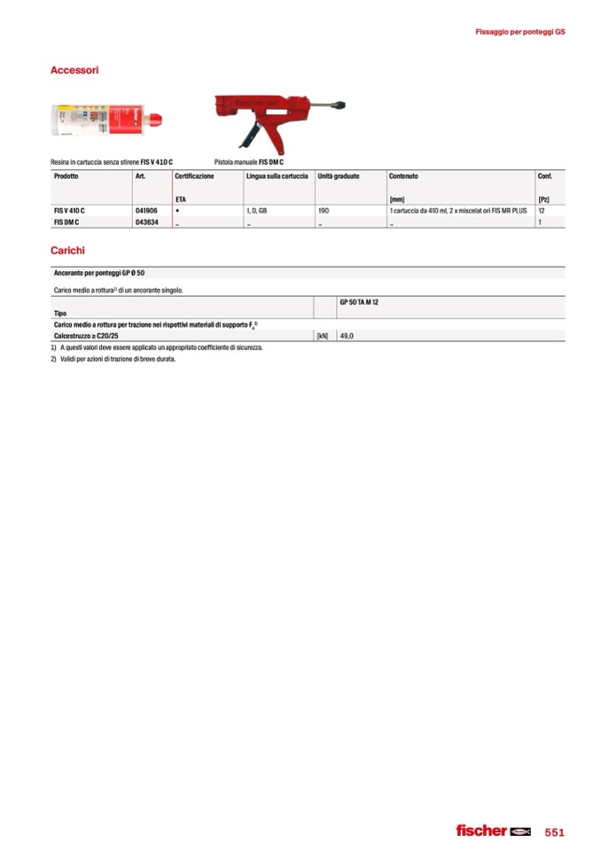 Resina in cartuccia senza stirene FIS V 410 C