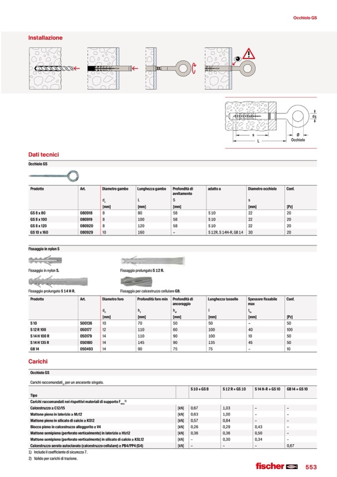 Carichi raccomandati nei rispettivi materiali di supporto F