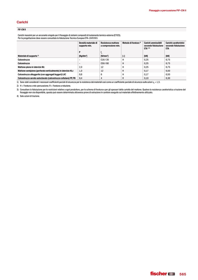 fissaggio non sia disponibile, questa può essere determinata attraverso prove di estrazione in cantiere eseguite sul materiale effettivamente utilizzato.