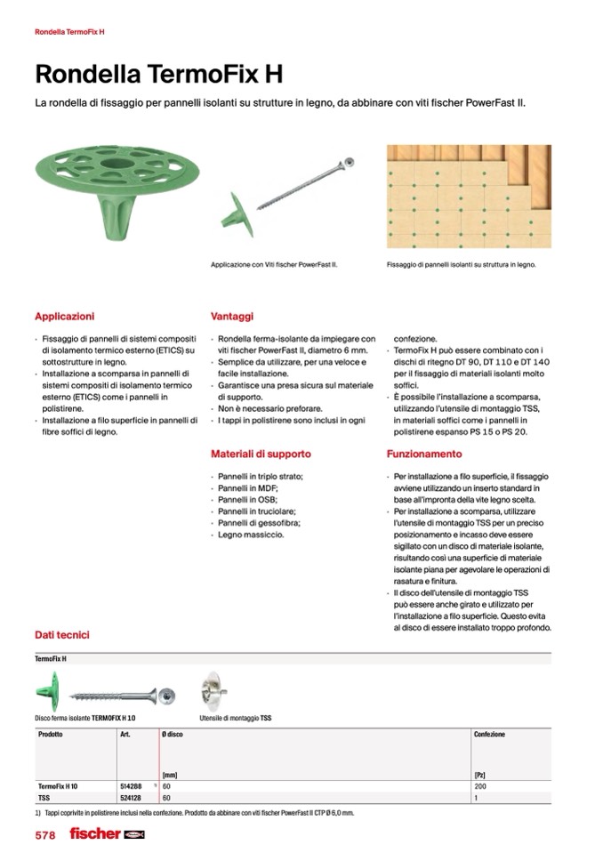 La rondella di fissaggio per pannelli isolanti su strutture in legno, da abbinare con viti fischer PowerFast II.