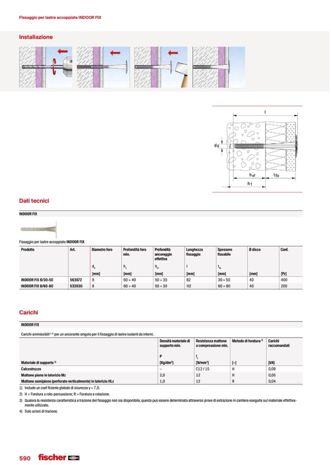 per un ancorante singolo per il fissaggio di lastre isolanti da interni.