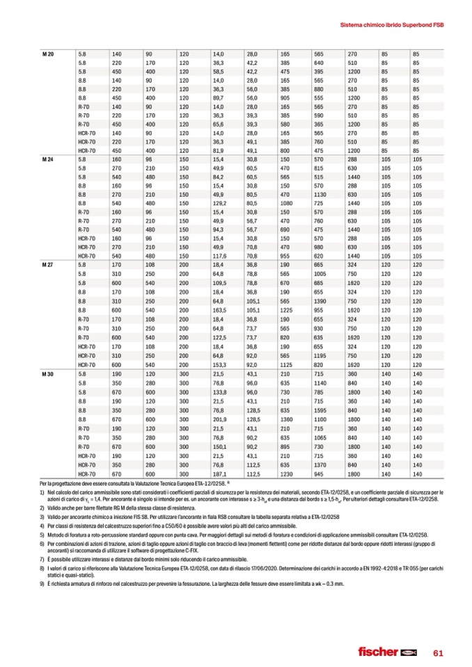 8) IvaloridicaricosiriferisconoallaValutazioneTecnicaEuropeaETA-12/0258,condatadirilascio17/06/2020.DeterminazionedeicarichiinaccordoaEN1992-4:2018eTR055(percarichi