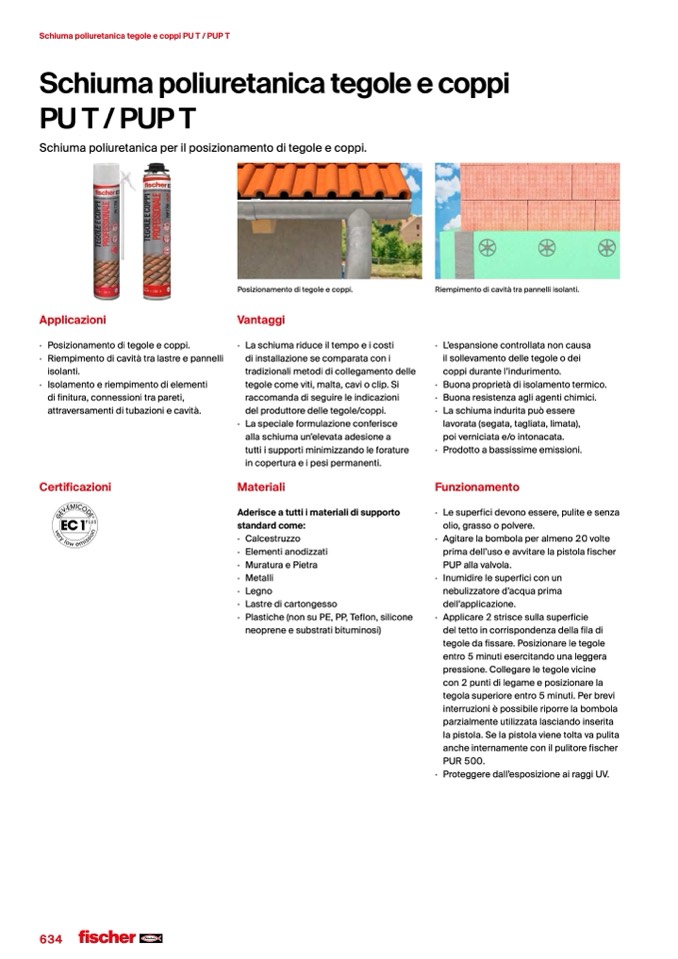 Schiuma poliuretanica tegole e coppi PU T / PUP T