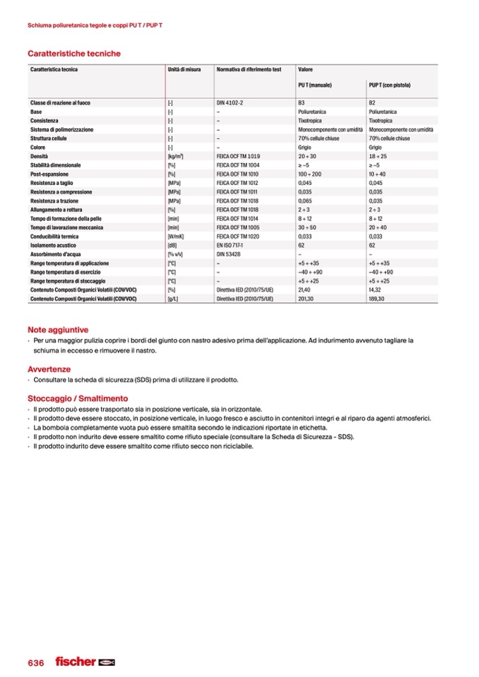 Schiuma poliuretanica tegole e coppi PU T / PUP T