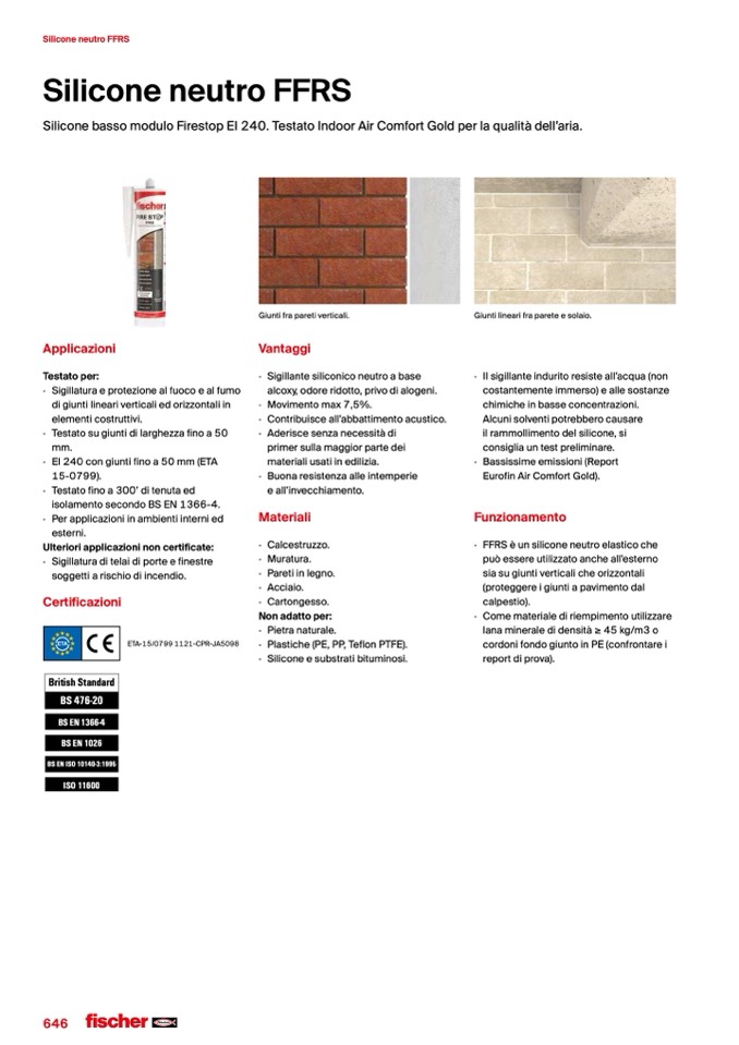 Silicone basso modulo Firestop EI 240. Testato Indoor Air Comfort Gold per la qualità dell’aria.