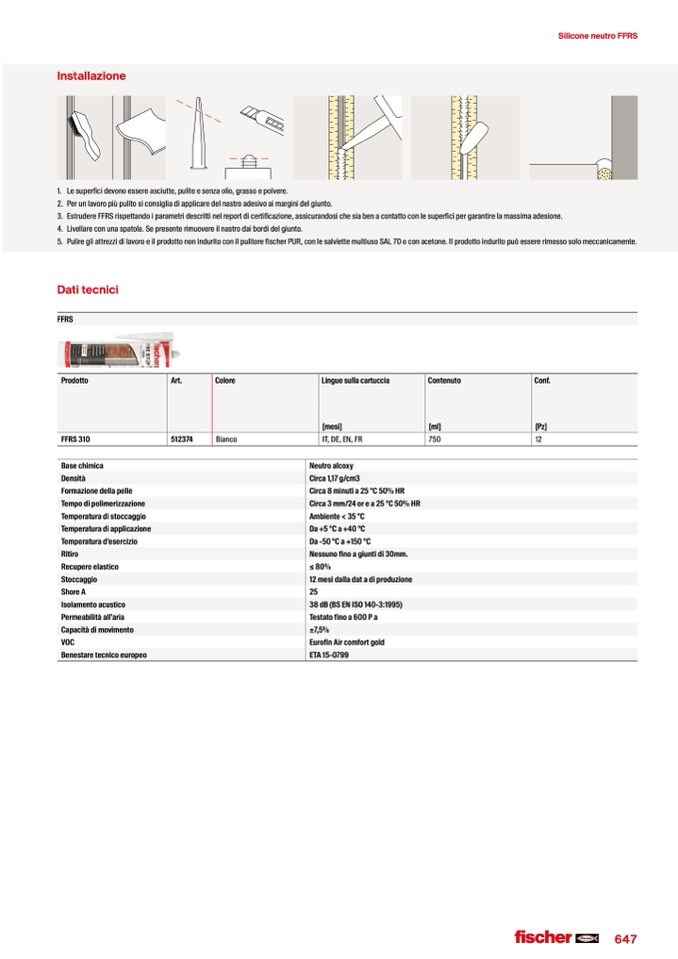 3. EstrudereFFRSrispettandoiparametridescrittinelreportdicertificazione,assicurandosichesiabenacontattoconlesuperficipergarantirelamassimaadesione.
