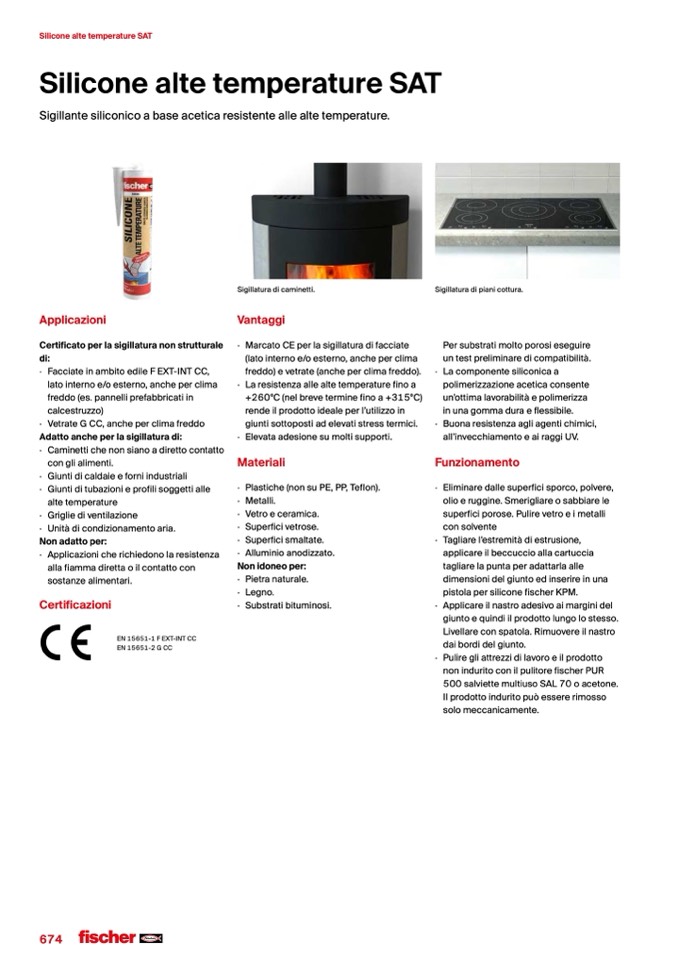 Sigillante siliconico a base acetica resistente alle alte temperature.