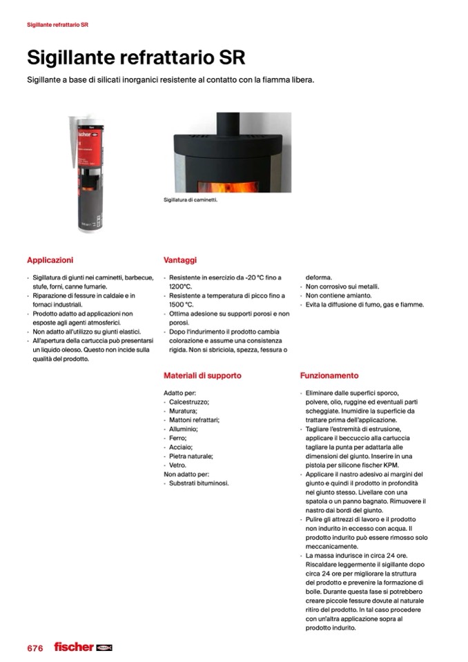 Sigillante a base di silicati inorganici resistente al contatto con la fiamma libera.