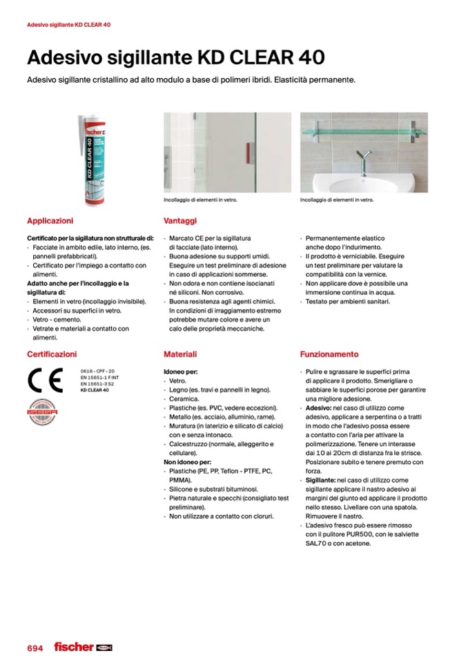 Adesivo sigillante cristallino ad alto modulo a base di polimeri ibridi. Elasticità permanente.