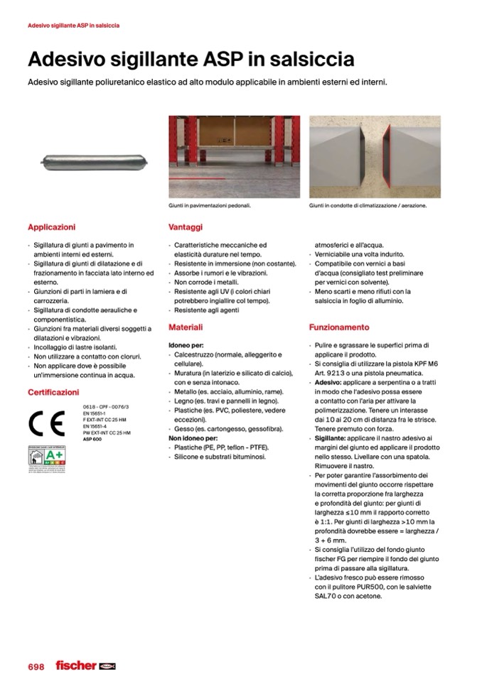 Adesivo sigillante ASP in salsiccia