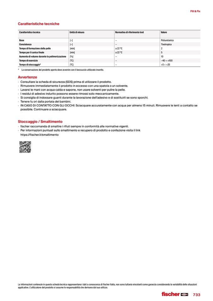 Le informazioni contenute in questa scheda tecnica rappresentano i dati a conoscenza di fischer Italia, non sono tuttavia vincolanti come garanzia considerando la variabilità delle situazioni