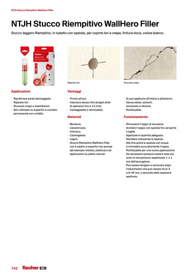 Stucco leggero Riempitivo, in tubetto con spatola, per coprire fori e crepe, finitura liscia, colore bianco.