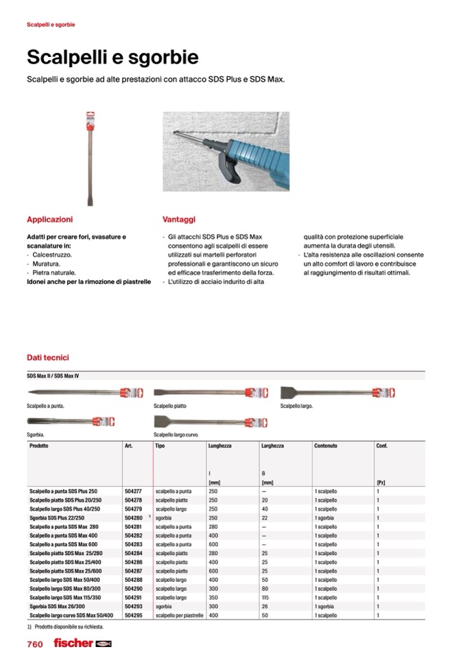 Scalpelli e sgorbie ad alte prestazioni con attacco SDS Plus e SDS Max.