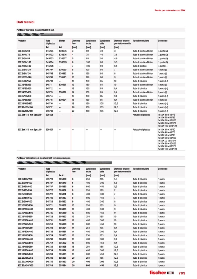 Punta per calcestruzzo e muratura SDX versioni prolungate