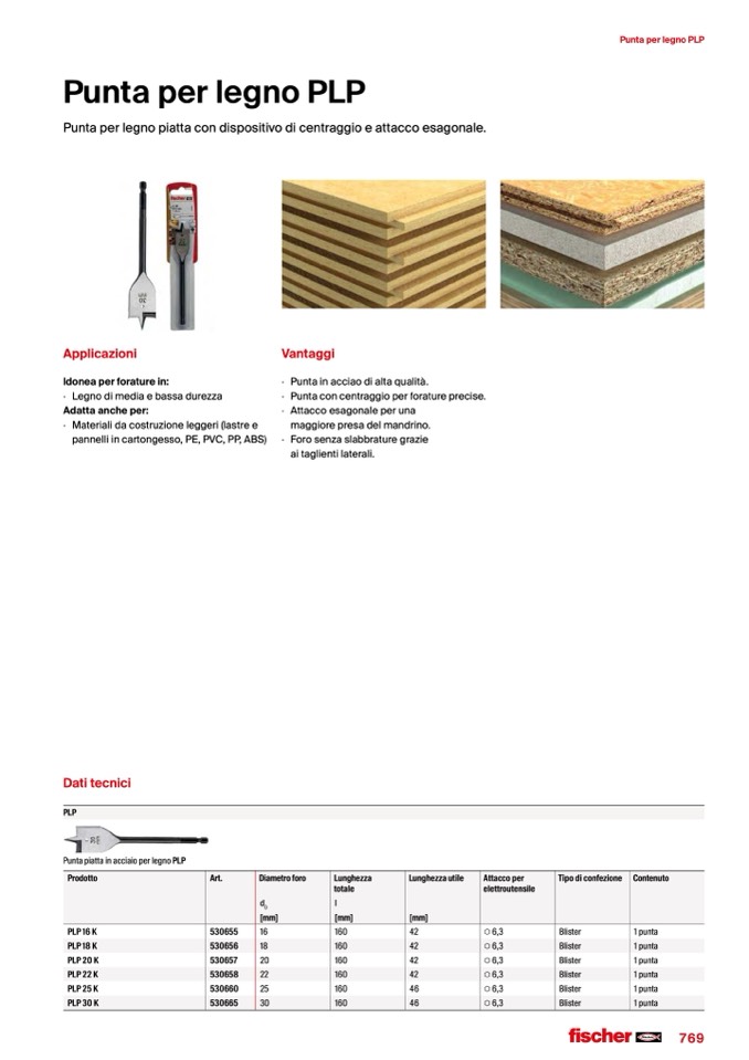 Punta per legno piatta con dispositivo di centraggio e attacco esagonale.