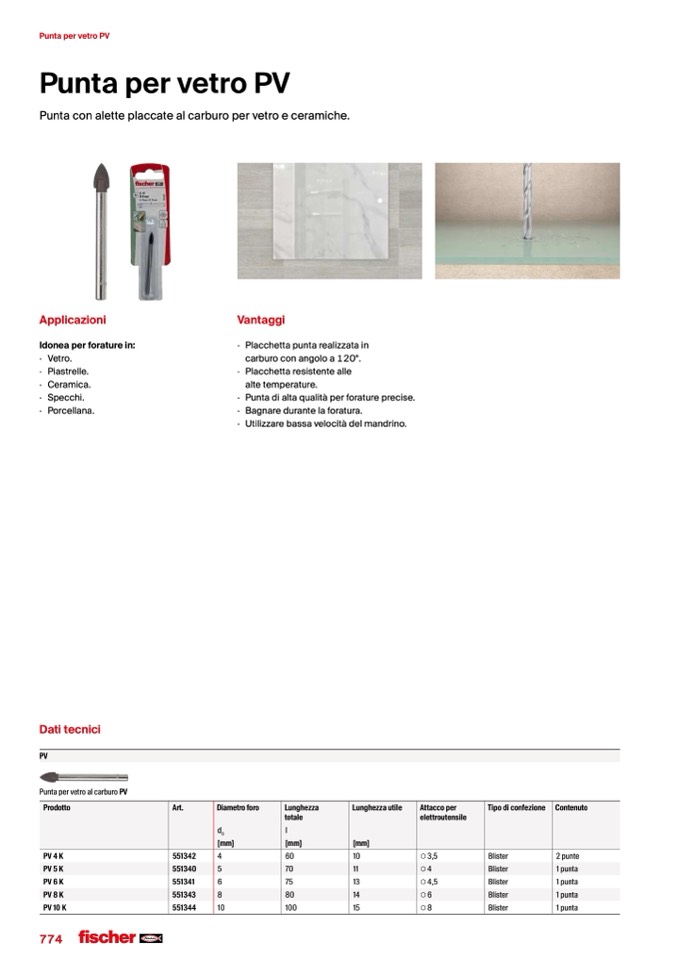 Punta con alette placcate al carburo per vetro e ceramiche.