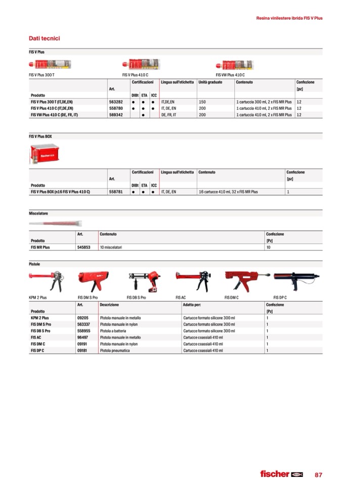 1 cartuccia 410 ml, 2 x FIS MR Plus