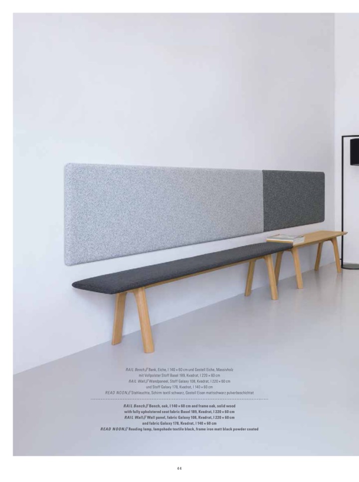 with fully upholstered seat fabric Basel 189, Kvadrat, l 220 × 60 cm