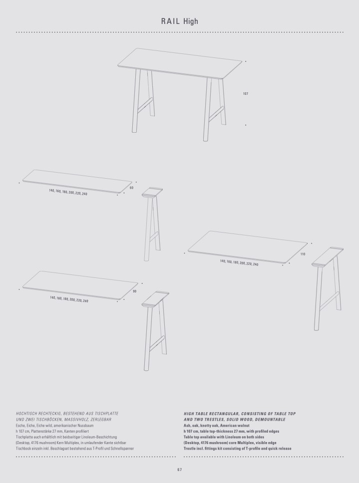 h 107 cm, table top-thickness 27 mm, with profiled edges