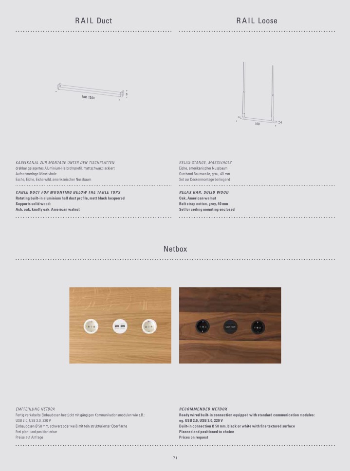 KABELKANAL ZUR MONTAGE UNTER DEN TISCHPLATTEN