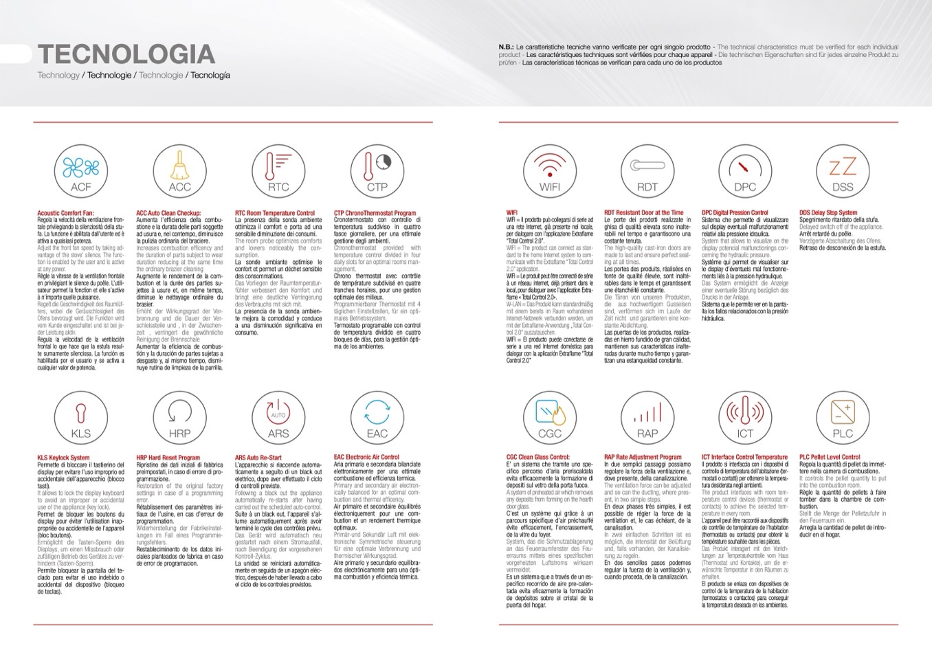 N.B.: Le caratteristiche tecniche vanno verificate per ogni singolo prodotto - The technical characteristics must be verified for each individual