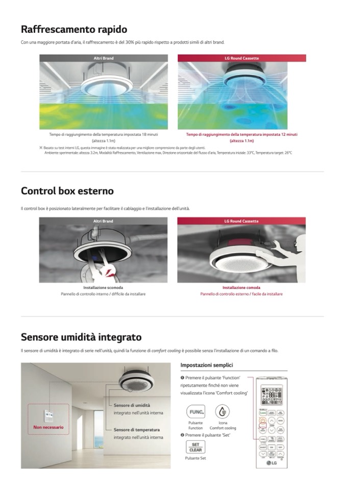 Il sensore di umidità è integrato di serie nell'unità, quindi la funzione di comfort cooling è possibile senza l'installazione di un comando a filo.