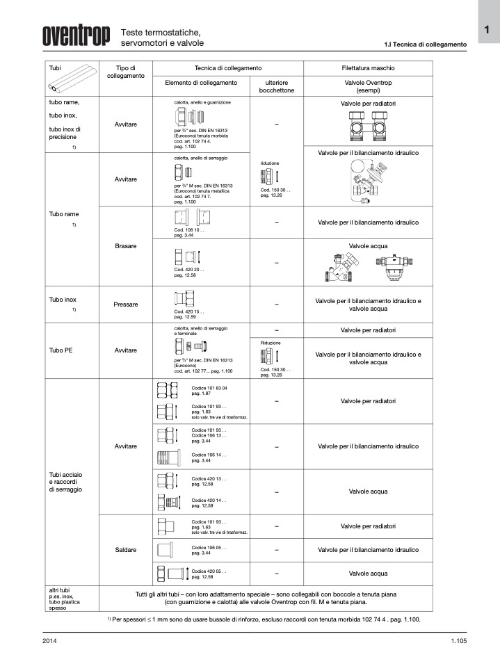 Per spessori ≤ 1 mm sono da usare bussole di rinforzo, escluso raccordi con tenuta morbida 102 74 4 . pag. 1.100.
