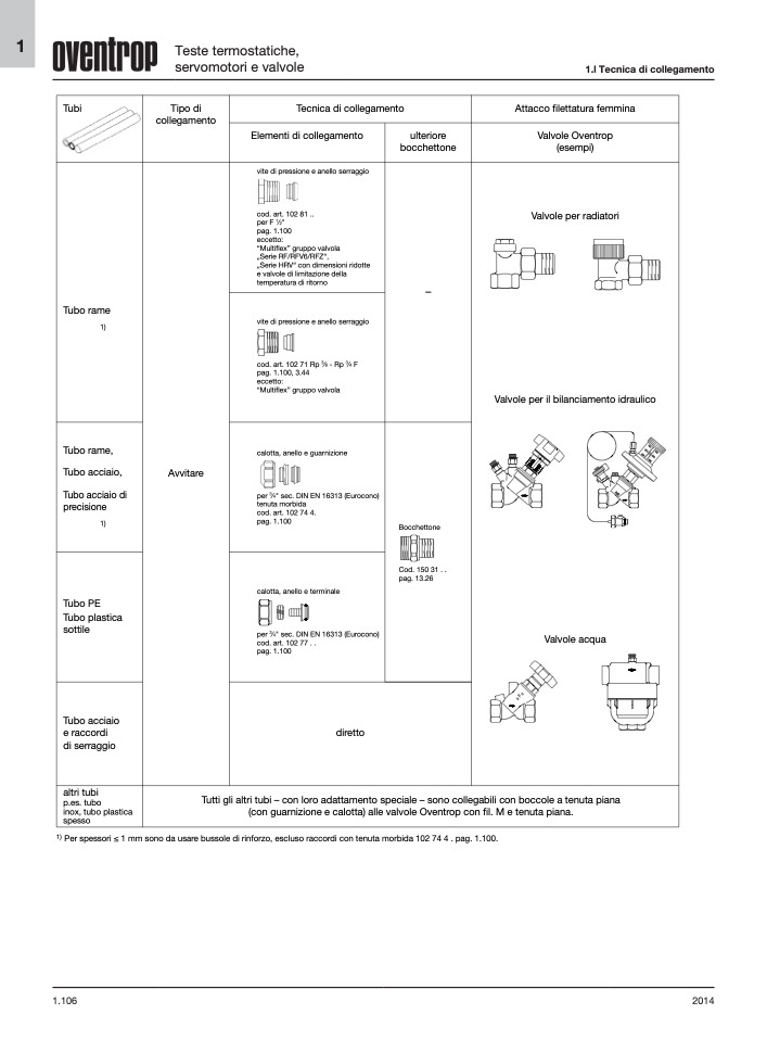 1) Per spessori ≤ 1 mm sono da usare bussole di rinforzo, escluso raccordi con tenuta morbida 102 74 4 . pag. 1.100.