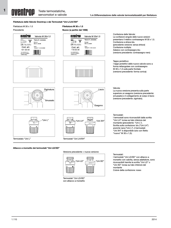 Filettatura delle Valvole Oventrop e dei Termostati “Uni L/LH//XH”