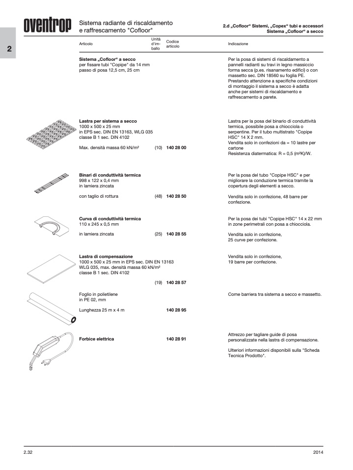 2.d „Cofloor“ Sistemi, „Copex“ tubi e accessori