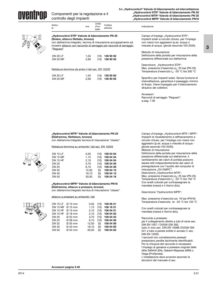3.c „Hydrocontrol“ Valvole di bilanciamento ed intercettazione