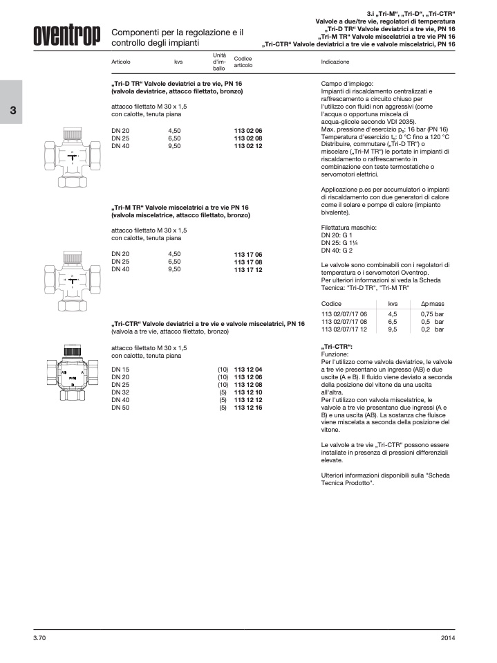 „Tri-CTR“ Valvole deviatrici a tre vie e valvole miscelatrici, PN 16