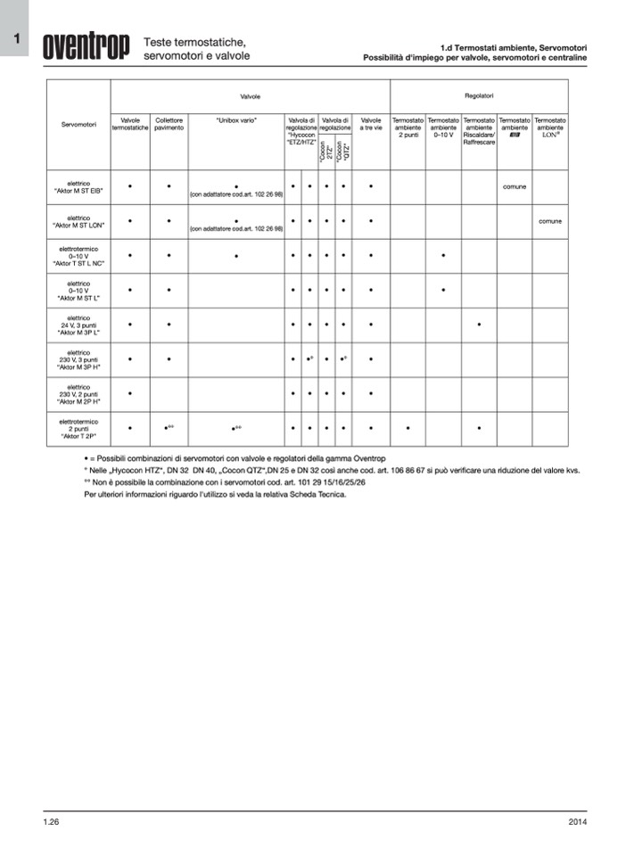 • = Possibili combinazioni di servomotori con valvole e regolatori della gamma Oventrop