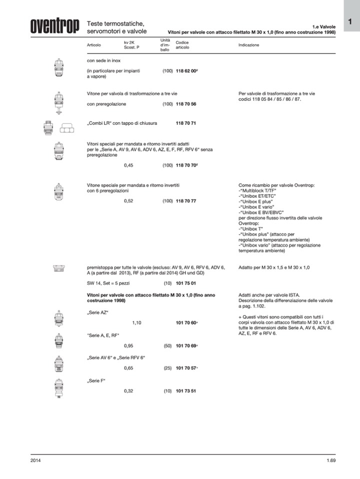 Vitoni per valvole con attacco filettato M 30 x 1,0 (fino anno costruzione 1998)