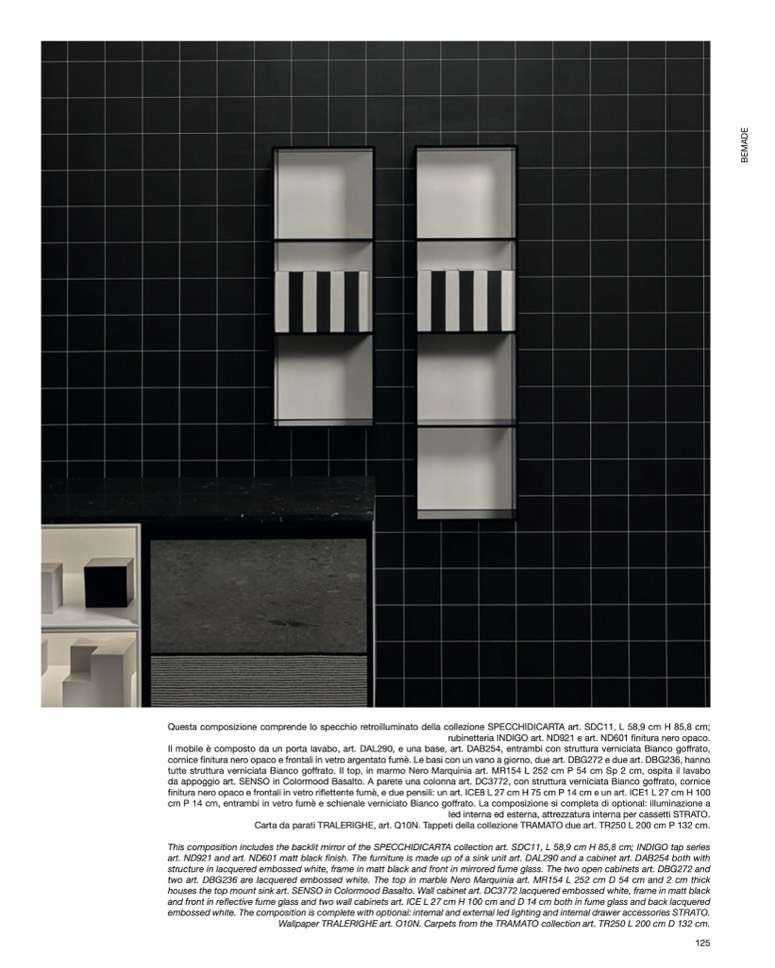 houses the top mount sink art. SENSO in Colormood Basalto. Wall cabinet art. DC3772 lacquered embossed white, frame in matt black