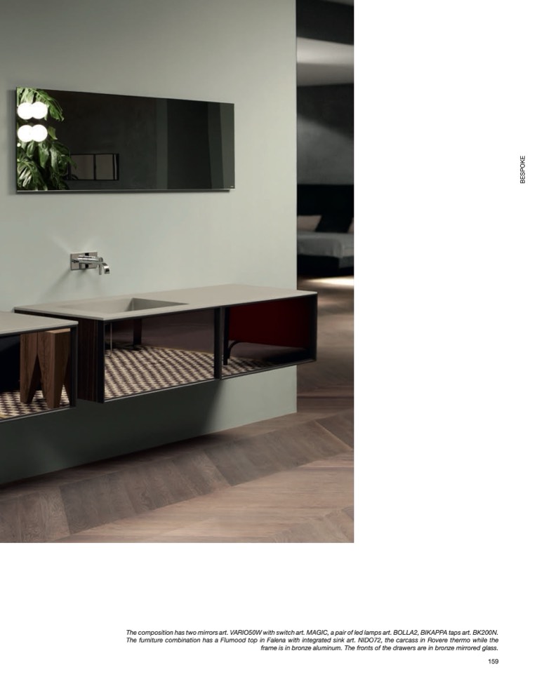 The composition has two mirrors art. VARIO50W with switch art. MAGIC, a pair of led lamps art. BOLLA2, BIKAPPA taps art. BK200N.