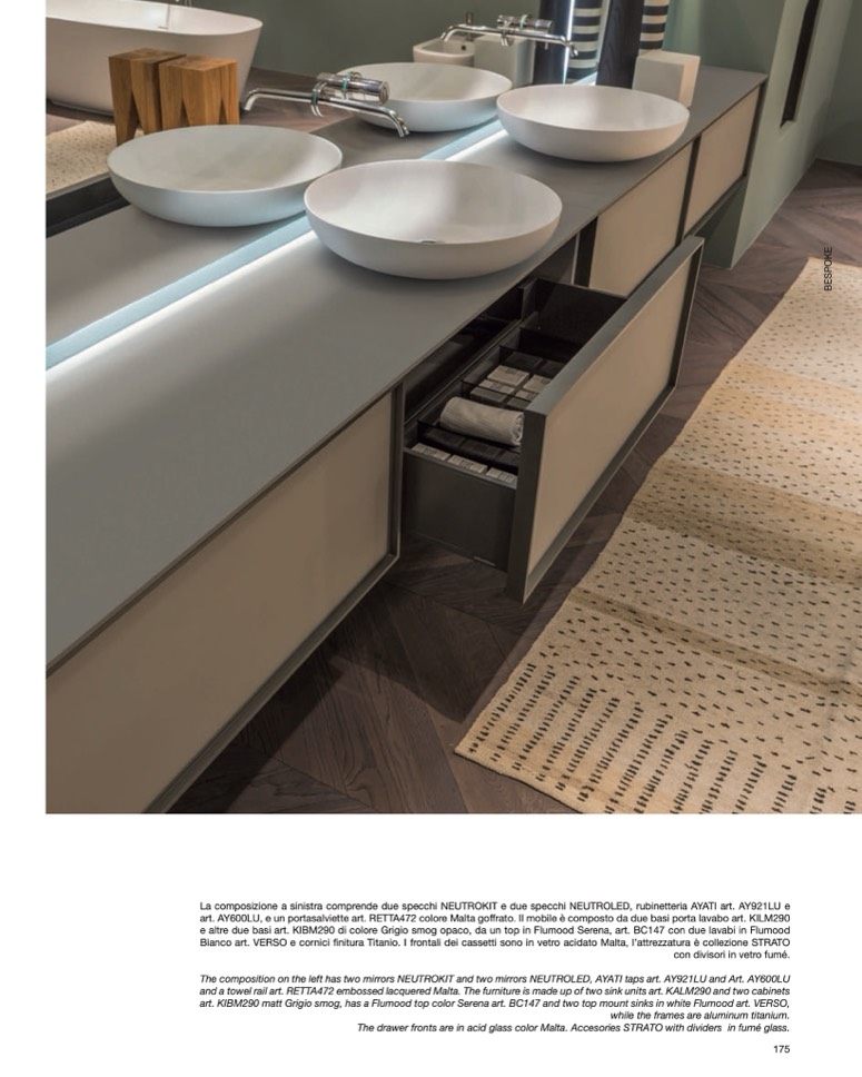The composition on the left has two mirrors NEUTROKIT and two mirrors NEUTROLED, AYATI taps art. AY921LU and Art. AY600LU