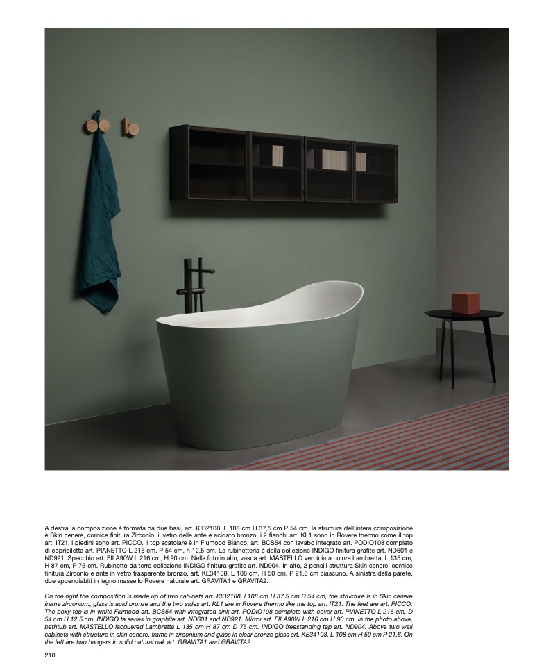 54 cm H 12,5 cm. INDIGO ta series in graphite art. ND601 and ND921. Mirror art. FILA90W L 216 cm H 90 cm. In the photo above,
