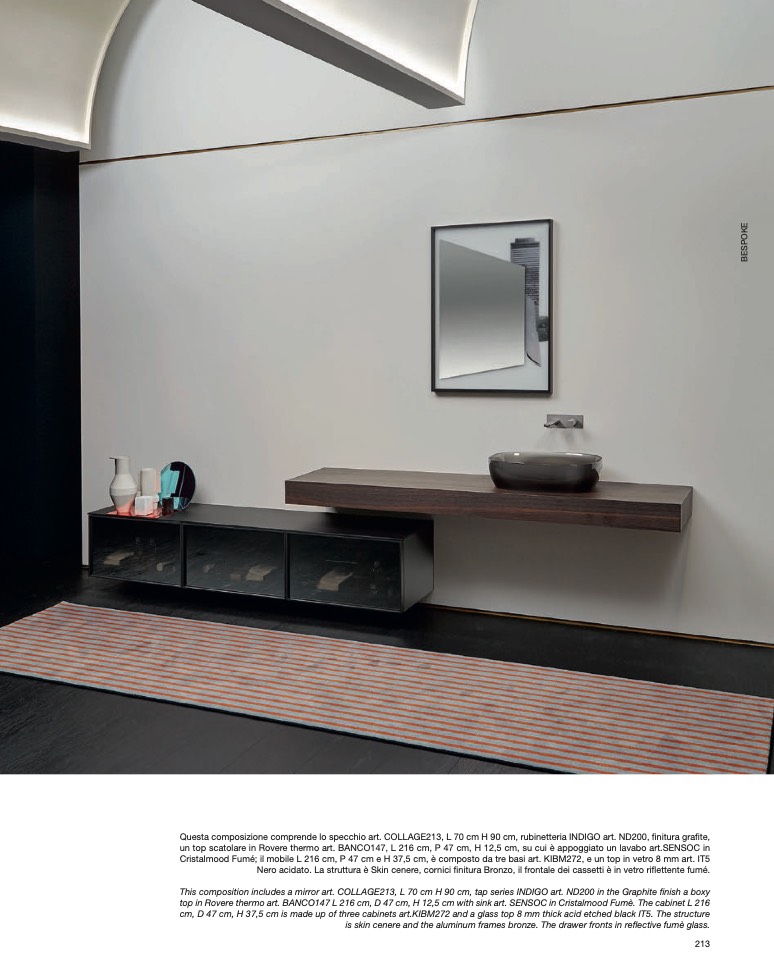 Questa composizione comprende lo specchio art. COLLAGE213, L 70 cm H 90 cm, rubinetteria INDIGO art. ND200, finitura grafite,