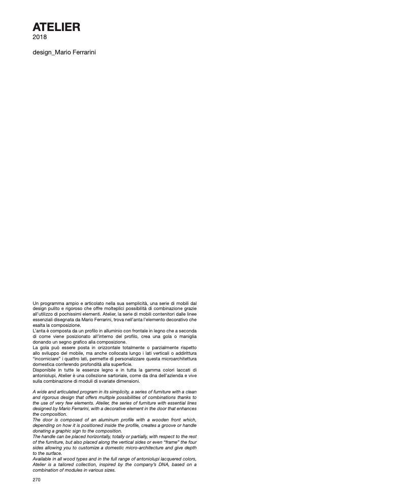 all’utilizzo di pochissimi elementi. Atelier, la serie di mobili contenitori dalle linee