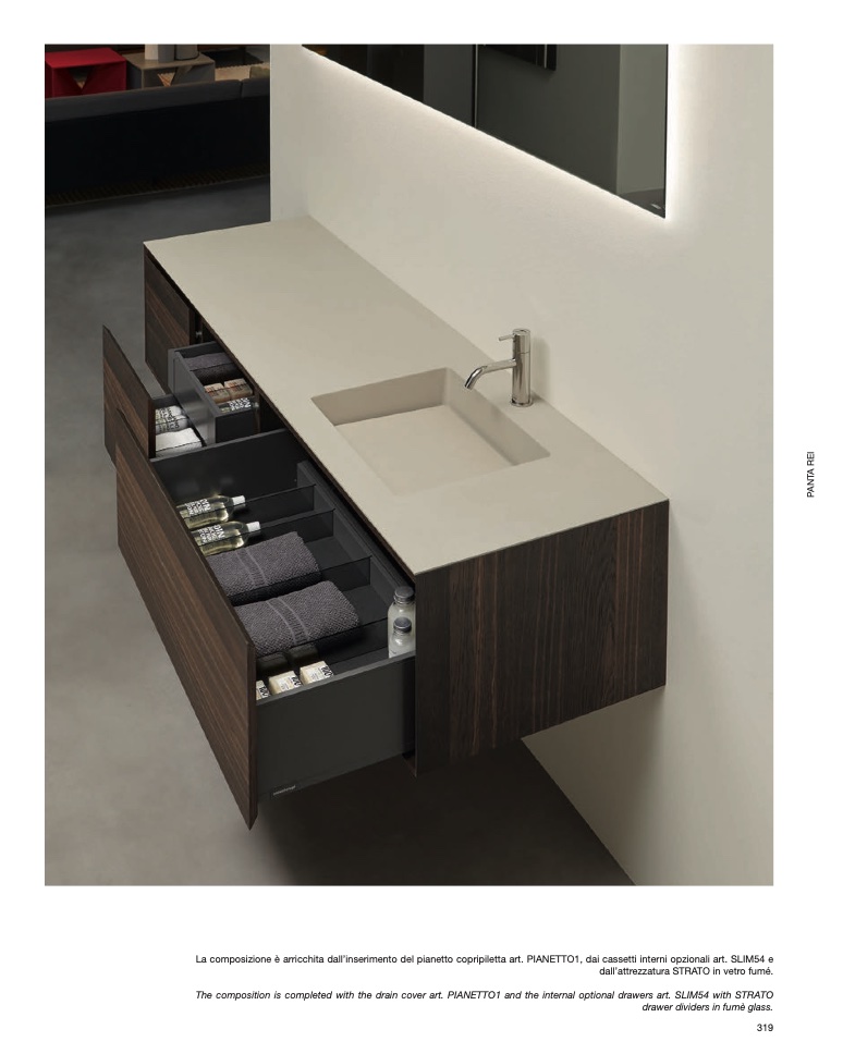 The composition is completed with the drain cover art. PIANETTO1 and the internal optional drawers art. SLIM54 with STRATO